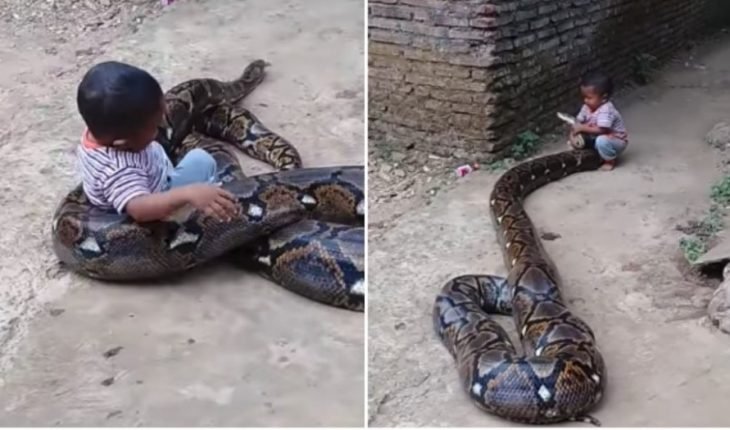 Sucedió en la Isla de Java, en Indonesia y desde que el video apareció en YouTube no para de sumar reproducciones. Es que las imágenes son increíbles, allí se ve a un niño que todavía no sabe hablar pero juega naturalmente con una enorme serpiente pitón, que sorprendentemente no reacciona ni ataca al menor.
