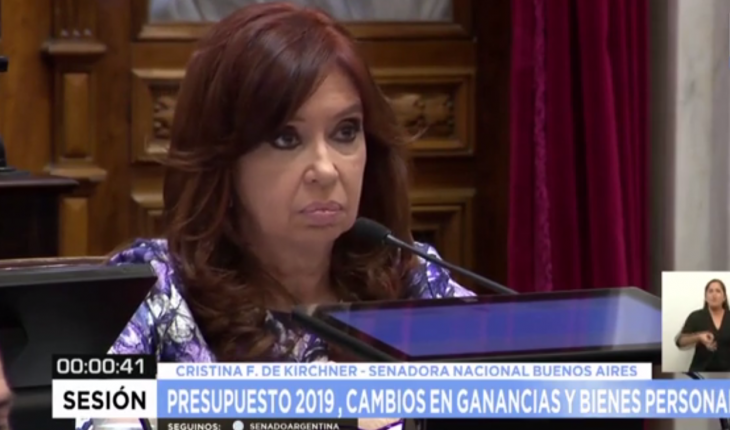 Con fuertes críticas al gobierno y un guiño al amplio sector del peronismo, Cristina Kircnner expresó su rechazo al Presupuesto 2019 durante su votación en el Senado esta madrugada.