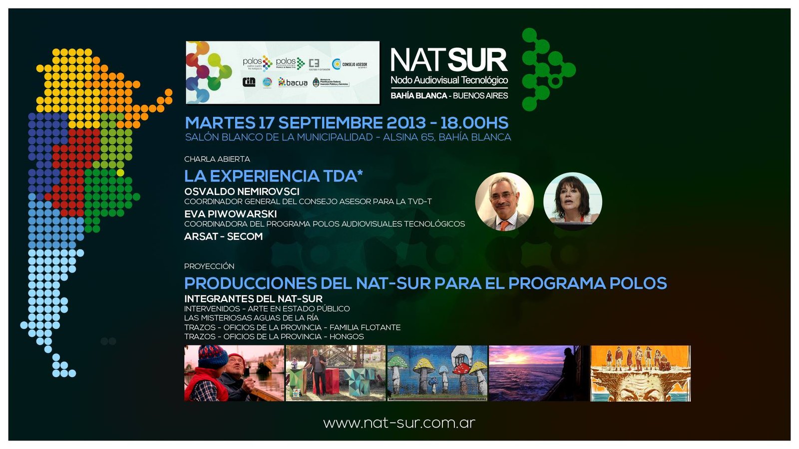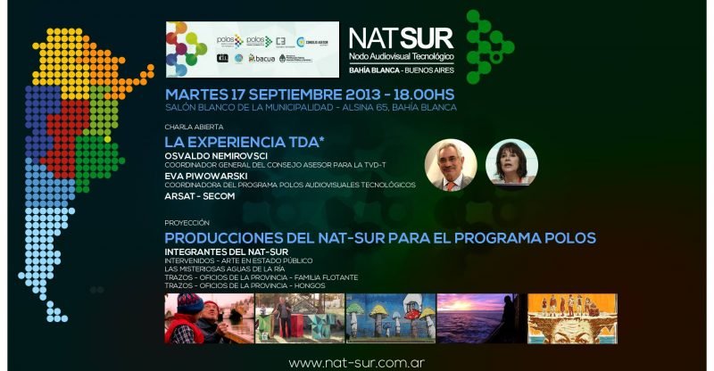 TDAMañana estarán presentes en nuestra ciudad autoridades nacionales de la TDA (Televisión Digital Abierta). Nos visitan, en ocasión del comienzo de emisión de la TDA en Bahía Blanca, el coordinador general del Consejo Asesor para la Televisión Digital Terrestre, Osvaldo Nemirovsci; la coordinadora general del Programa Polos Audiovisuales Tecnológicos, Eva Piwowarski; el vicepresidente de ArSat, Guillermo Rus; y autoridades de la Secom.