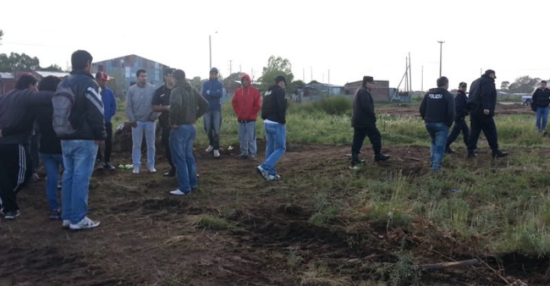 El delegado municipal junto con una comisión policial llegaron al lugar para derribar una casa de chapas y tirantes que la familia Retamal había levantado el día anterior y para remover otras demarcaciones.