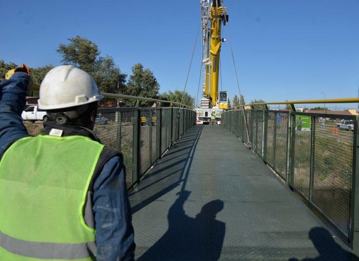Schlosser, explicó que el puente quedará habilitado en 15 días, luego de terminar detalles en las bases y accesos de ambos extremos. Tiene 22,70 metros de largo y 2 de ancho, y demandó una inversión de 2.156.000 pesos. La estructura metálica fue armada en taller y luego trasladada al lugar.