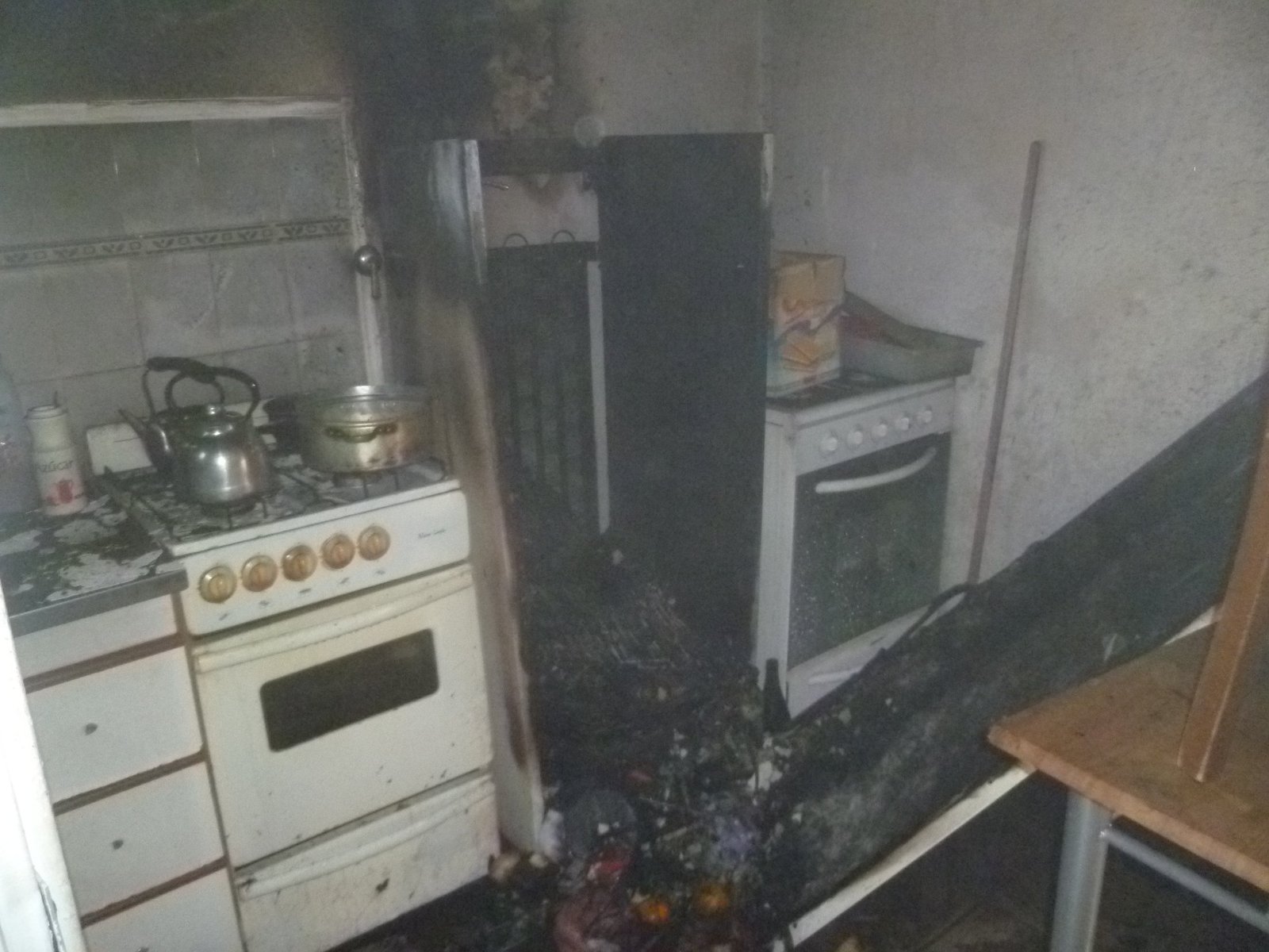 Por causas que se desconocen, una heladera se prendió fuego y se quemó en su totalidad, provocando ahumamiento en el resto de la vivienda.