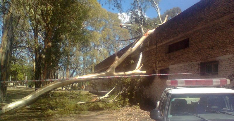 Este mediodía la caída de un eucalipto provocó daños en el techo de la Escuela Nº 17, que se encuentra ubicada en el interior del Parque de Mayo