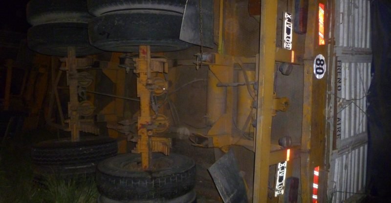 Anoche volcó un camión en la rotonda de Grünbein sin que se registraran heridos.