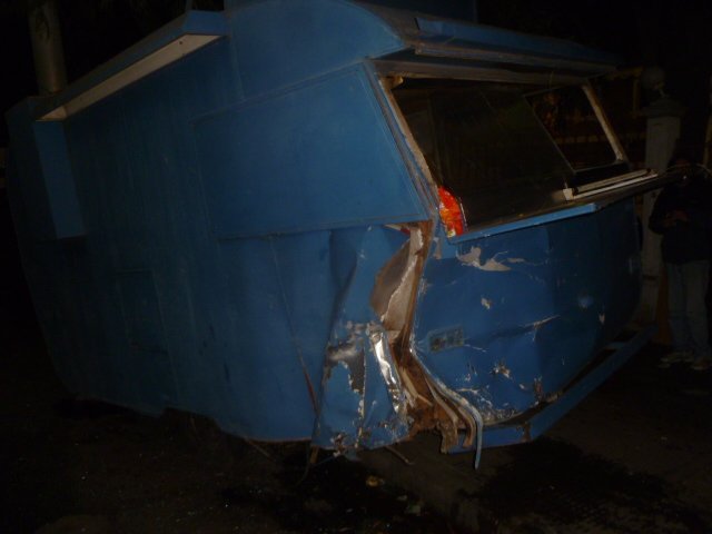 Esta mañana un auto colisionó contra un carro de comidas ubicado frente al Club Universitario y dos jóvenes resultaron con lesiones.