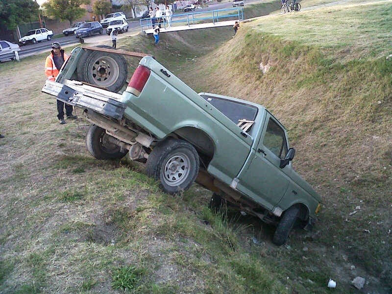 Una camioneta Ford F100 que había sido robada, la madrugada del domingo, apareció dentro de una zanja ubicada en Cuyo y Estomba.
