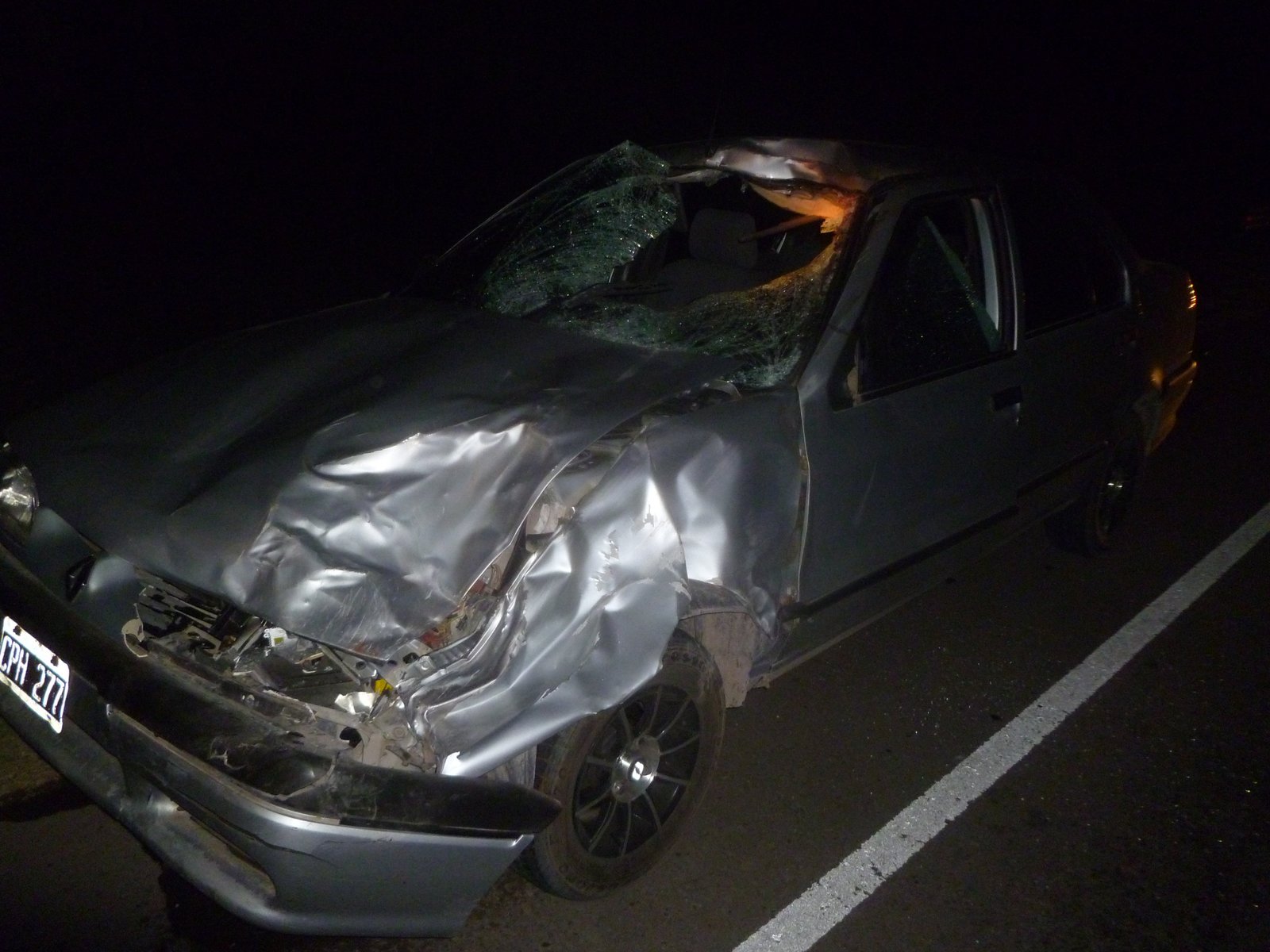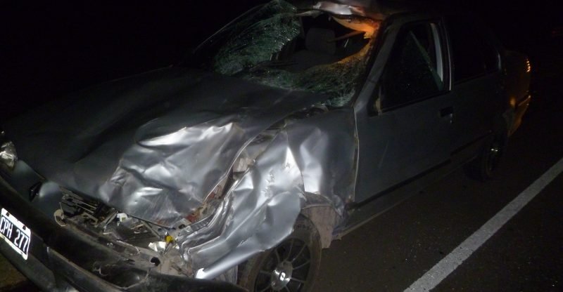vacunos_choqueEsta madrugada, alrededor de las 3:10, un camión Iveco (LZQ 767) y un Renault 19 (CPH 277) embistieron tres vacas que andaban sueltas en el km 705 de la ruta 3 sur.