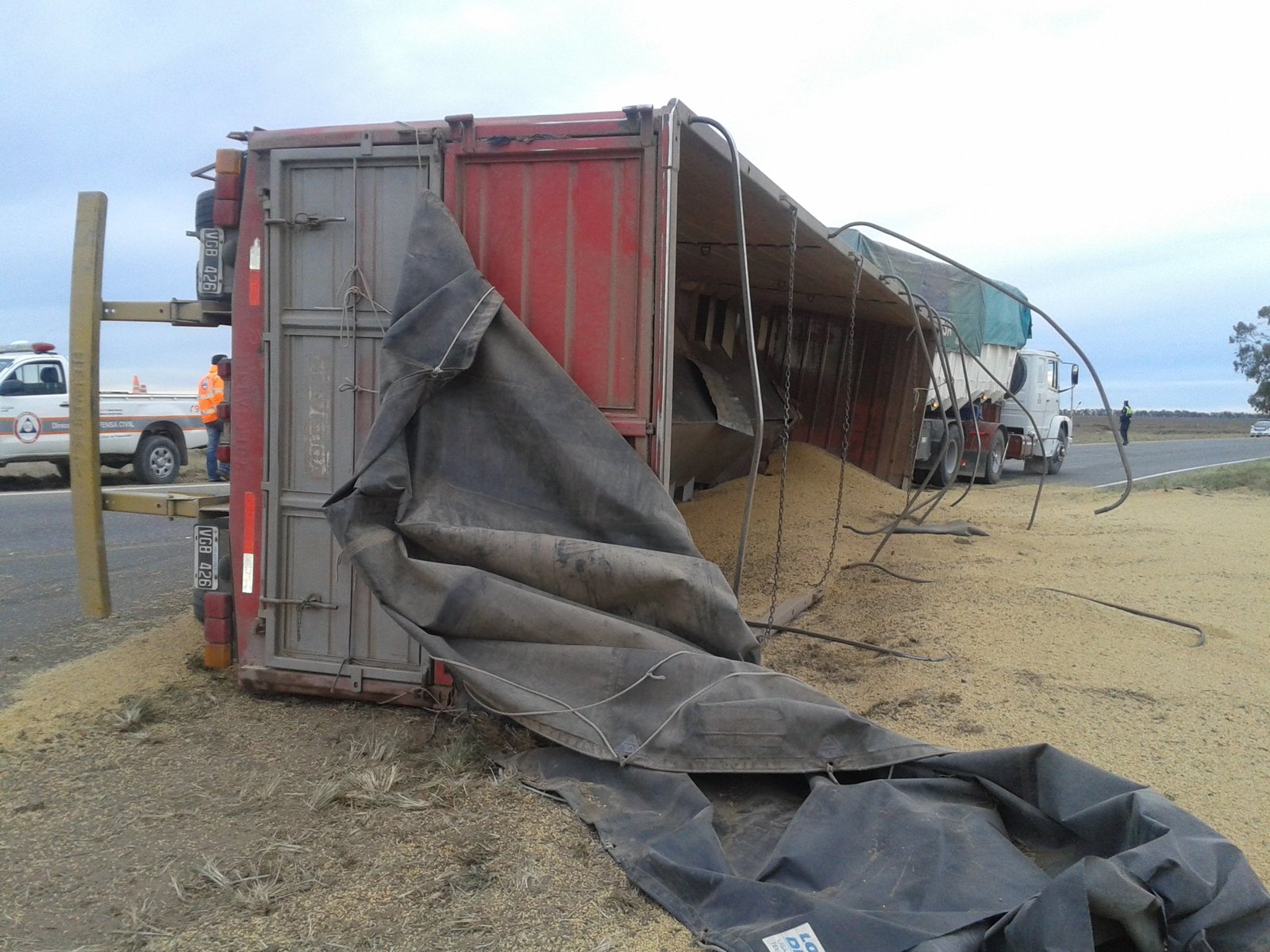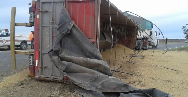 El accidente fue protagonizado por un Mercedes Benz 1114 (DDK 446) que iba cargado con soja. Por motivos que se desconocen, el camión volcó el acoplado hacia un costado de la banquina y el chasis quedó sobre la otra mano.