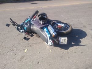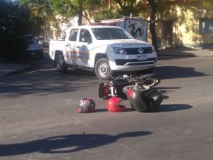 En el lugar colisionaron una moto marca Guerrero 200 cc. dominio A017BSK conducida por el Sr. Arena Artidorio de 40 años quien presentaba escoriaciones y dolor en su miembro inferior derecho (atendido en el lugar), acompañado por la Sra. Arena Karen de 25 años quien fue trasladada por la ambulancia del servicio de emergencias Siempre con politraumatismos.