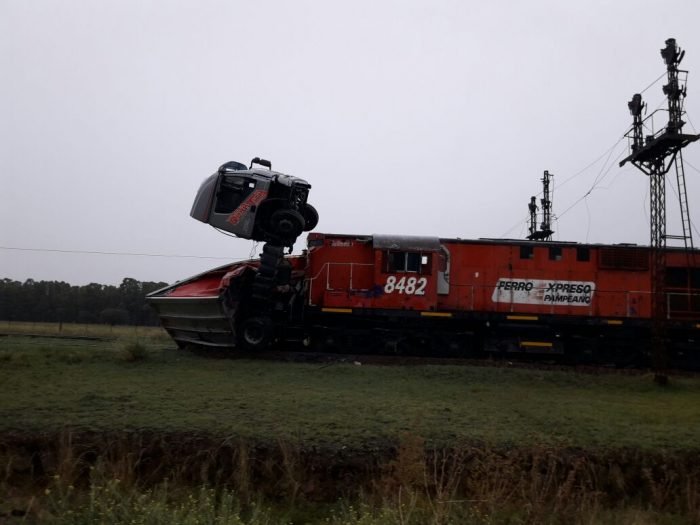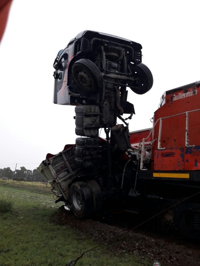 El camión, cargado de jugo y gaseosas, tenía como destino la provincia de Neuquén. El tren  se dirigía hacia Darregueira.
