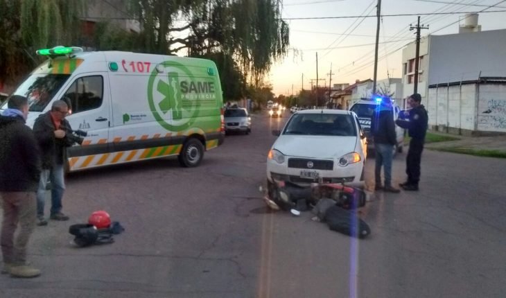 Dos personas que circulaban en moto marca Gilera Smash 110cc. sufrieron heridas esta mañana en un choque con un auto marca Fiat Siena en Malvinas y Paraná, según informó Defensa Civil.
