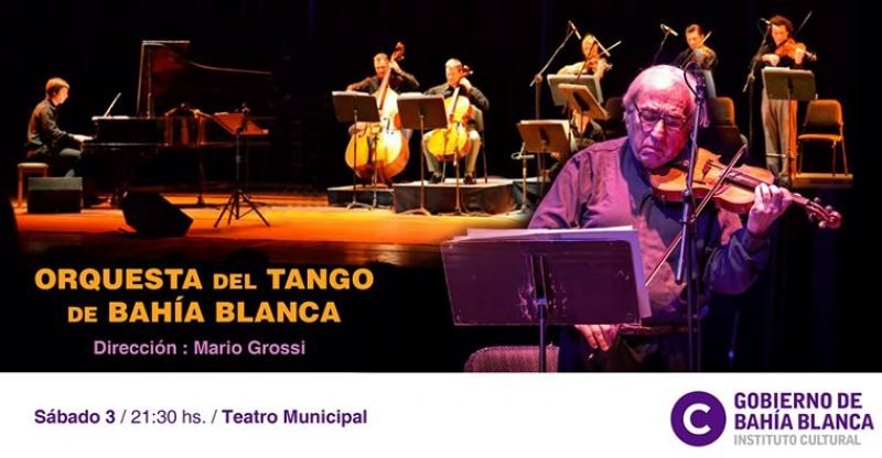 La Orquesta del Tango de Bahía Blanca con la dirección del maestro Mario Grossi vuelve al escenario del Teatro Municipal festejando su noveno aniversario de su formación, este sábado 3 de Mayo, a las 21:30 horas.