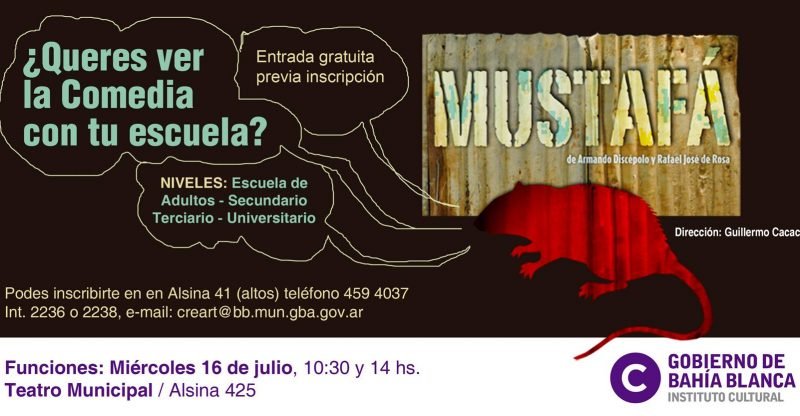 El Instituto Cultural de Bahía Blanca informó que se realizarán dos funciones de la Comedia Municipal Mustafá para las escuelas.