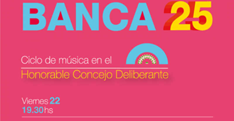 El próximo viernes 22 de agosto tendrá lugar el primer encuentro del ciclo de recitales “BANCA 25 la música pide la palabra”, que consta de una presentación mensual de músicos de la ciudad en el recinto Concejo Deliberante, organizado por el Instituto Cultural de Bahía Blanca y el Honorable Concejo Deliberante.