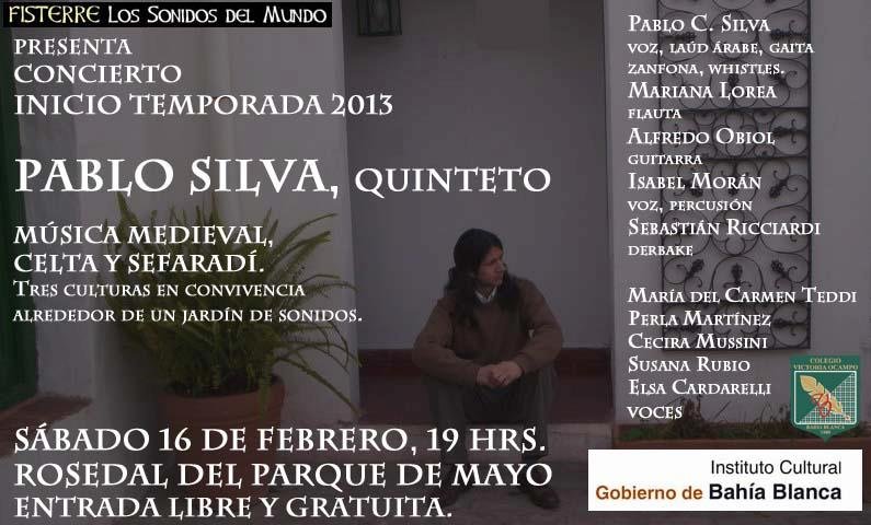 Continúa el ciclo Larai Lará, con músicos de la ciudad en los parques de la ciudad. El próximo sábado 16, desde las 19 hs., se presentará Pablo Silva Quinteto (música celta, medieval y sefardí), en El Rosedal del Parque de Mayo.