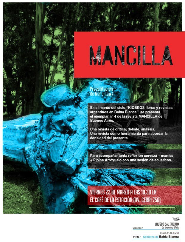 Este viernes 22, a las 19:30, se presentará el ejemplar N°4 de la revista Mancilla de Buenos Aires, en el marco del ciclo “KIOSKOS, libros y revistas de Argentina en Bahía Blanca” auspiciado por el Instituto Cultural.