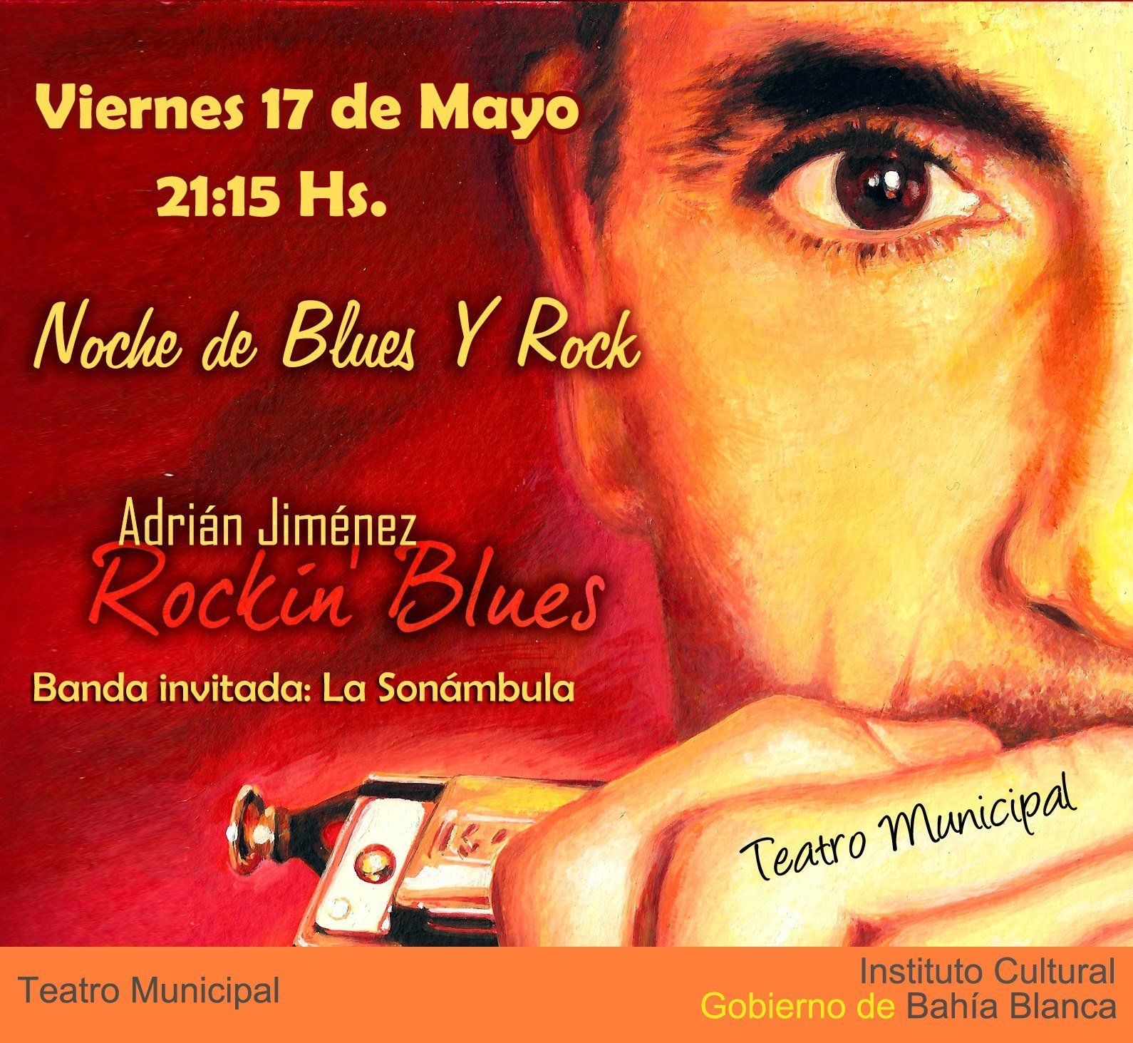 Adrián Jiménez, uno de los mejores exponentes de la armónica de nuestro país, se presentará esta noche en el Teatro Municipal. También serán parte de la velada el trío de rock y blues Los Sonámbulos.