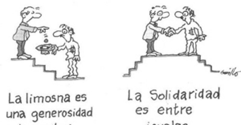 Por eso con esta primera reflexión, la Cátedra quiere empezar a posicionarse en que la Solidaridad es mucho más que la simple ayuda. Significa superar las acciones aisladas de buena voluntad, que brotan de sentimientos positivos pero permanecen desvinculadas del resto de las prácticas cotidianas. No está mal donar la ropa usada, colaborar con una colecta, separa y los diarios y cartones para los cartoneros y hasta dejarles aparte los alimentos que no consumimos. Al contrario; sin dudas son buenas acciones. pero no son suficientes para poner en práctica todo lo que la palabra “solidaridad” implica. Tampoco alcanza con las campañas solidarias que se organizan los medios de comunicación junto con fundaciones e iglesias. Y no es que no haya que hacerlas, pero no deben ser “final de camino” sino principio disparador de otras miradas.