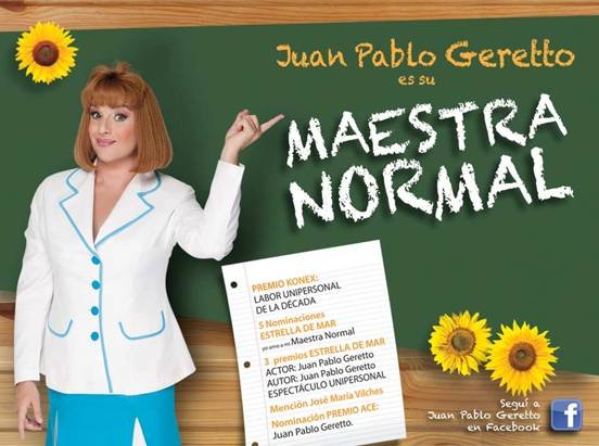 Escrita e interpretada por Juan Pablo Geretto, la obra narra las peripecias de una maestra durante un acto escolar.