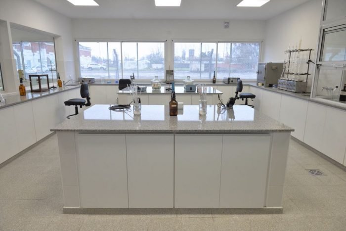 Entre los trabajos se encuentran un hall de acceso, zona de recepción de muestras, portería, sala de maquinas, baños, una oficina, droguero, administración, un laboratorio de microbiología con cuatro boxes, una sala de lavado, una sala de esterilización, un laboratorio químico y zona destinada a estacionamiento. Todo el predio cuenta con un cerco perimetral tipo olímpico.