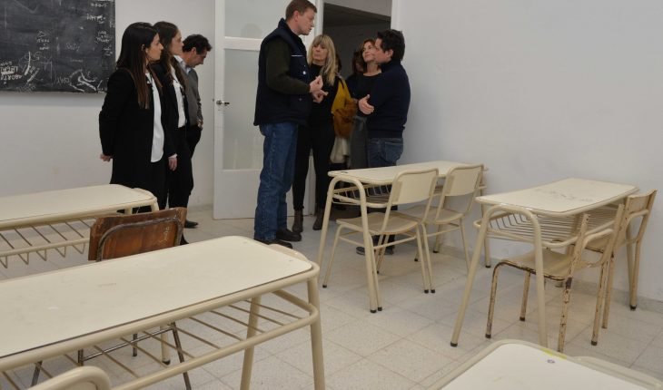 El ministro de Educación provincial, Gabriel Sánchez Zinny, visitó la ciudad y acompañado por la intendenta interina María Laura Biondini recorrió las obras que se realizaron en la Escuela Superior N° 28.